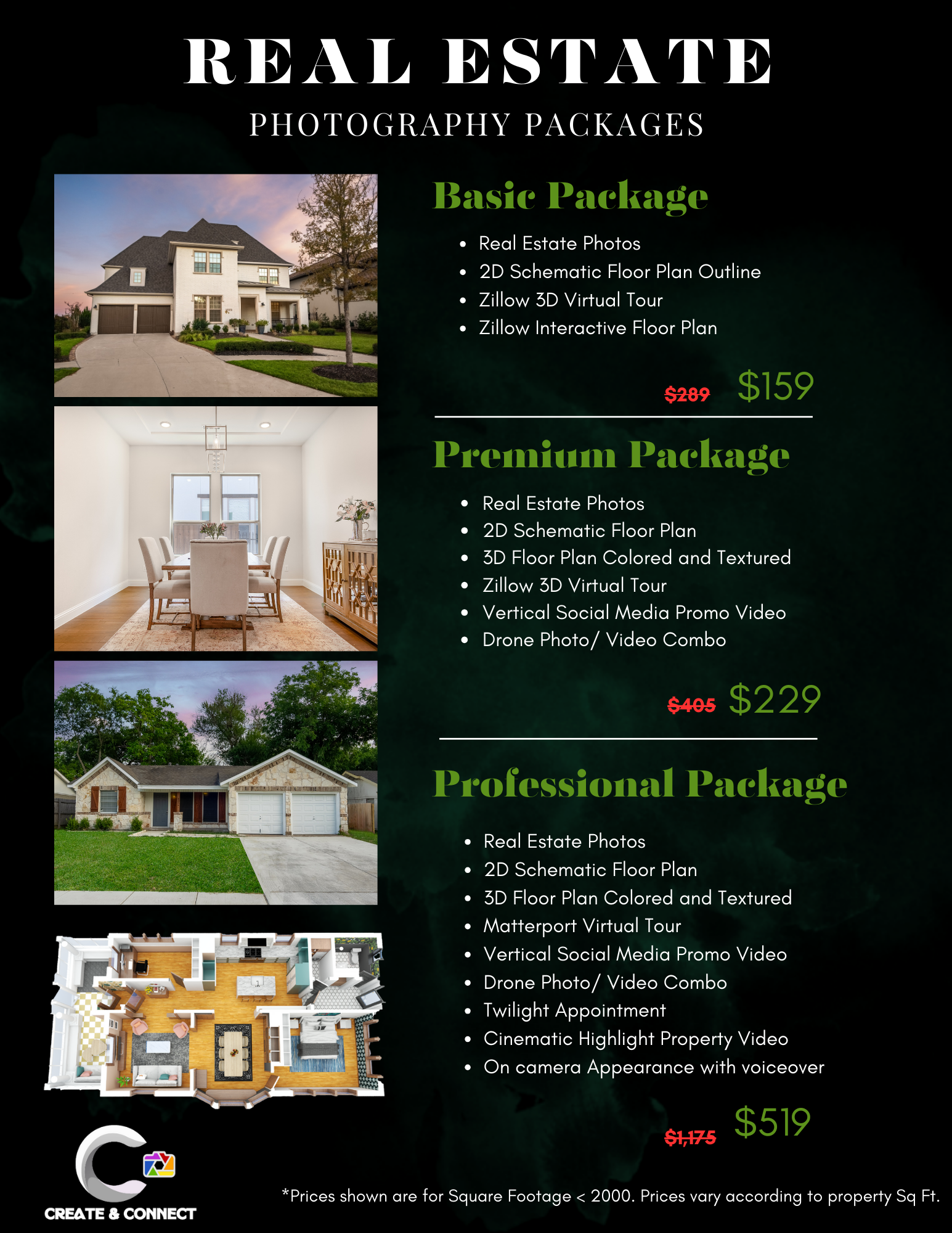 Build your Brand. Photos aren't just for your listing nowadays. Realtors with a visually strong online presence have more opportunities to reach more potential clients. Showcase 24/7 with virtual tours and video walk-throughs, potential buyers can explore your properties anytime, anywhere. Professionally photographed properties often sell faster and at higher prices, maximizing the return on your investment.
